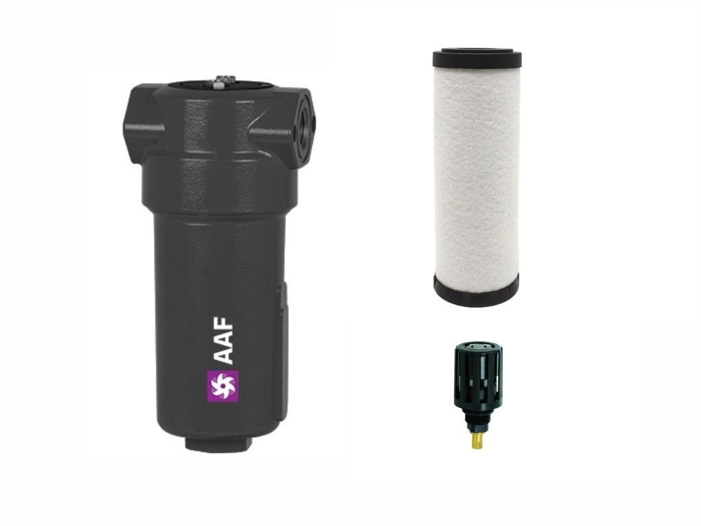 AAF filtr zajišťuje vysoce efektivní odstraňování pevných částic, vody, olejových aerosolů, uhlovodíků, pachu a par ze systémů stlačeného vzduchu do 16 bar.