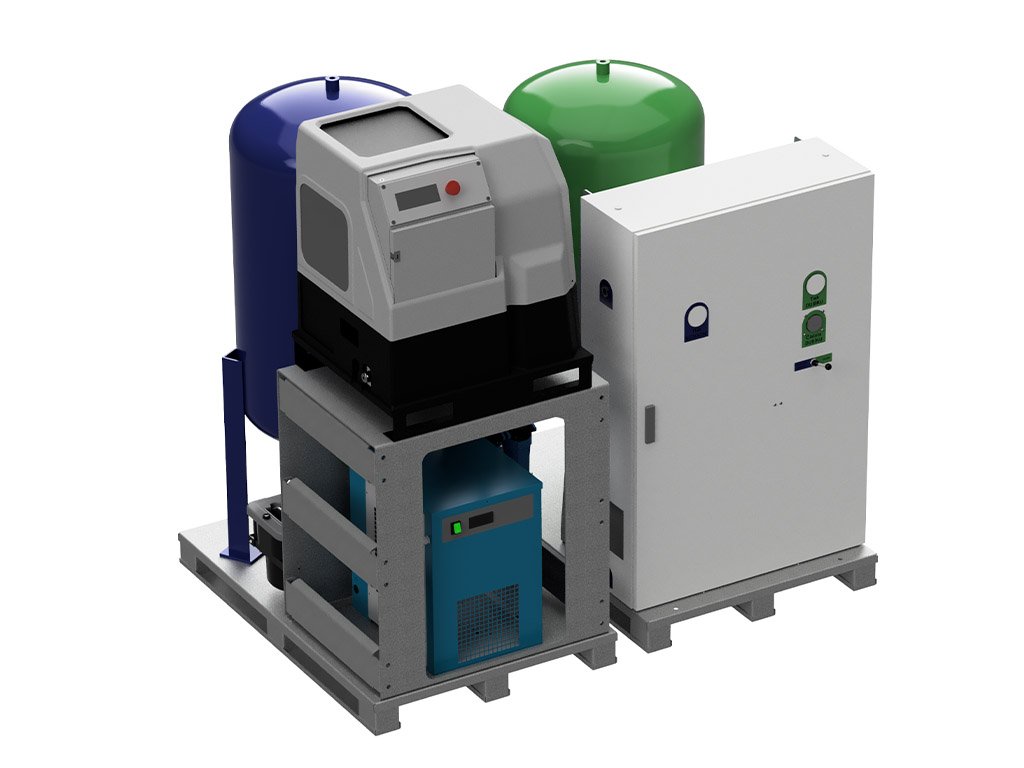 - Kompaktní design s integrovanou filtrací, sušičkou vzduchu a zásobníkem.