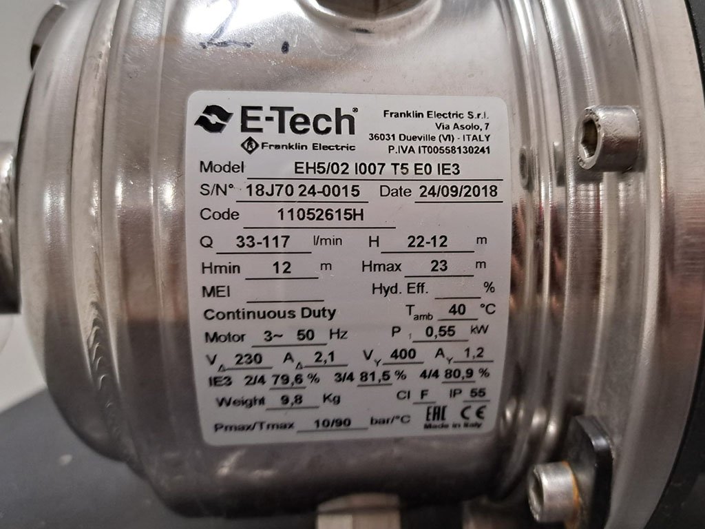 Horizontální vícestupňové čerpadlo E-TECH 5/2T vhodné pro menší průmyslové a domácí systémy s využitím pro: