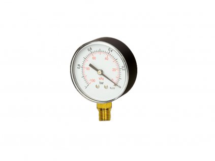 - Tělo manometru je vyrobeno z plastu, měřící člen a ukazatel ze slitin mědi, čelní sklo je akrylátové.