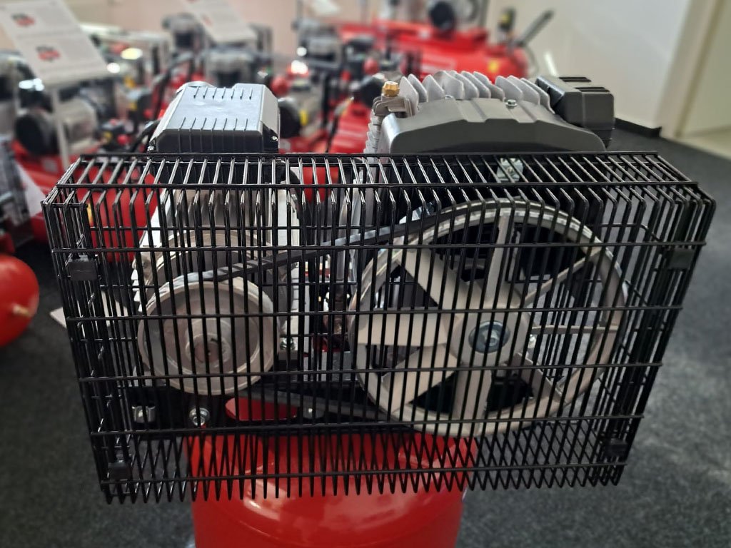 Tento olejový, dvouválcový, pomaloběžný, pístový kompresor s řemenovým pohonem je vybaven tlakovým spínačem s ochranou proti přetížení. Na výstupu z kompresoru je regulátor tlaku s manometry. Připojení přes standardní rychlospojku. Kompresor je snadno přemístitelný díky jeho široké rukojeti a dvěma velkým kolům.