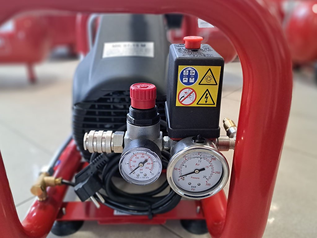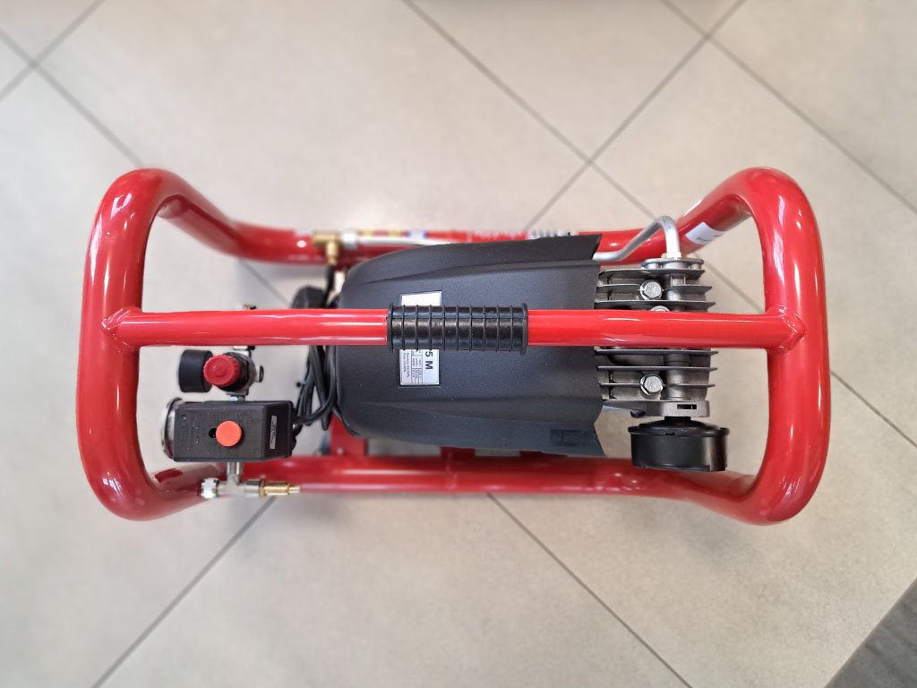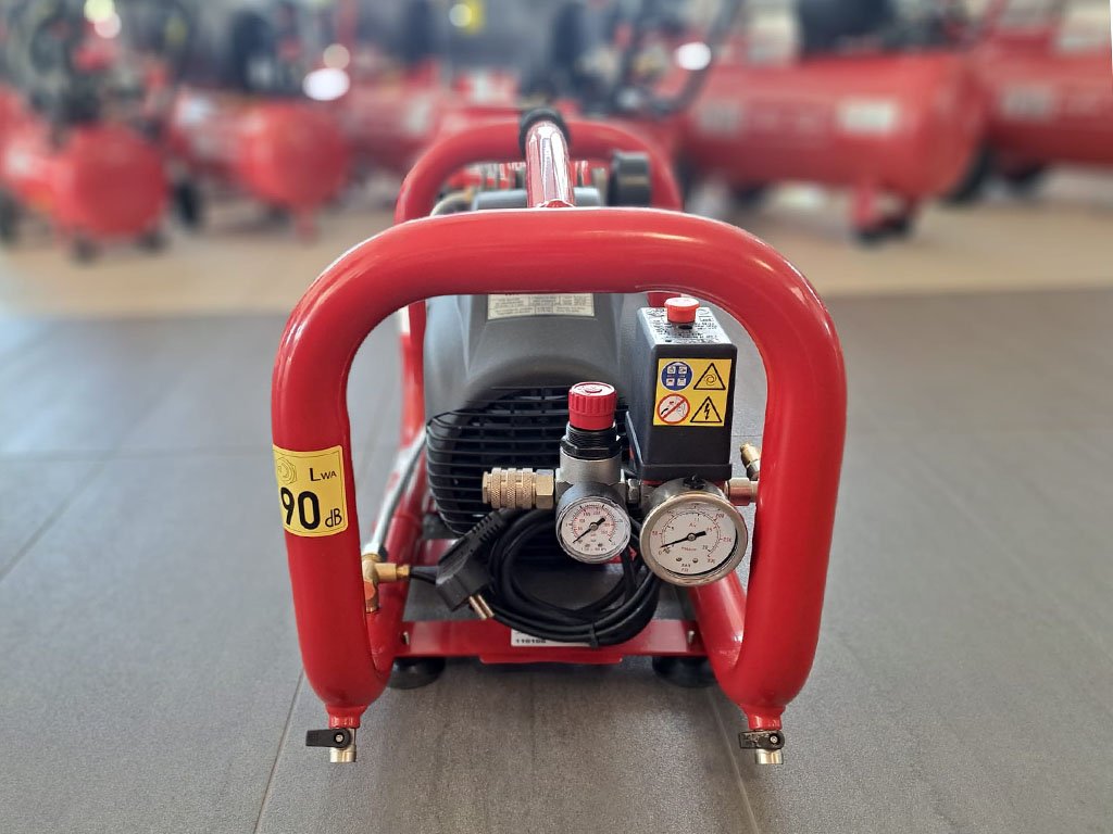 Kompresor je vybaven regulátorem tlaku, manometry a ventilem na odvod kondenzátu z rámu, který slouží jako ochrana agregátu a zároveň je i malou tlakovou nádobou. Jeho chod zajišťuje tlakový spínač. Je chráněn proti přehřátí tepelnou pojistkou. Součástí kompresoru je elektrický kabel v délce 1,8 m. Díky rukojeti a lehké váze se snadno přenáší.