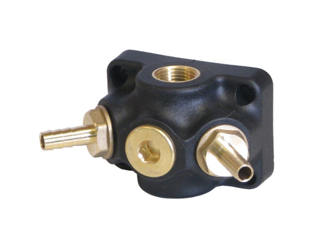 Rozdělovač má vstup kondenzátu 1/2” a tři výstupy 1/2”. Všechny přípojky jsou mosazné. Rozdělovač je dodáván s potřebným upevňovacím materiálem.