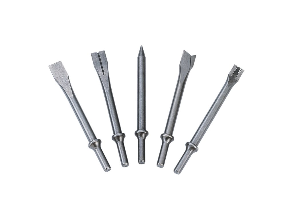 Součástí sady je sekací kladivo, 5 kusů sekáčů s různými tvary a jedna upínací pružina.