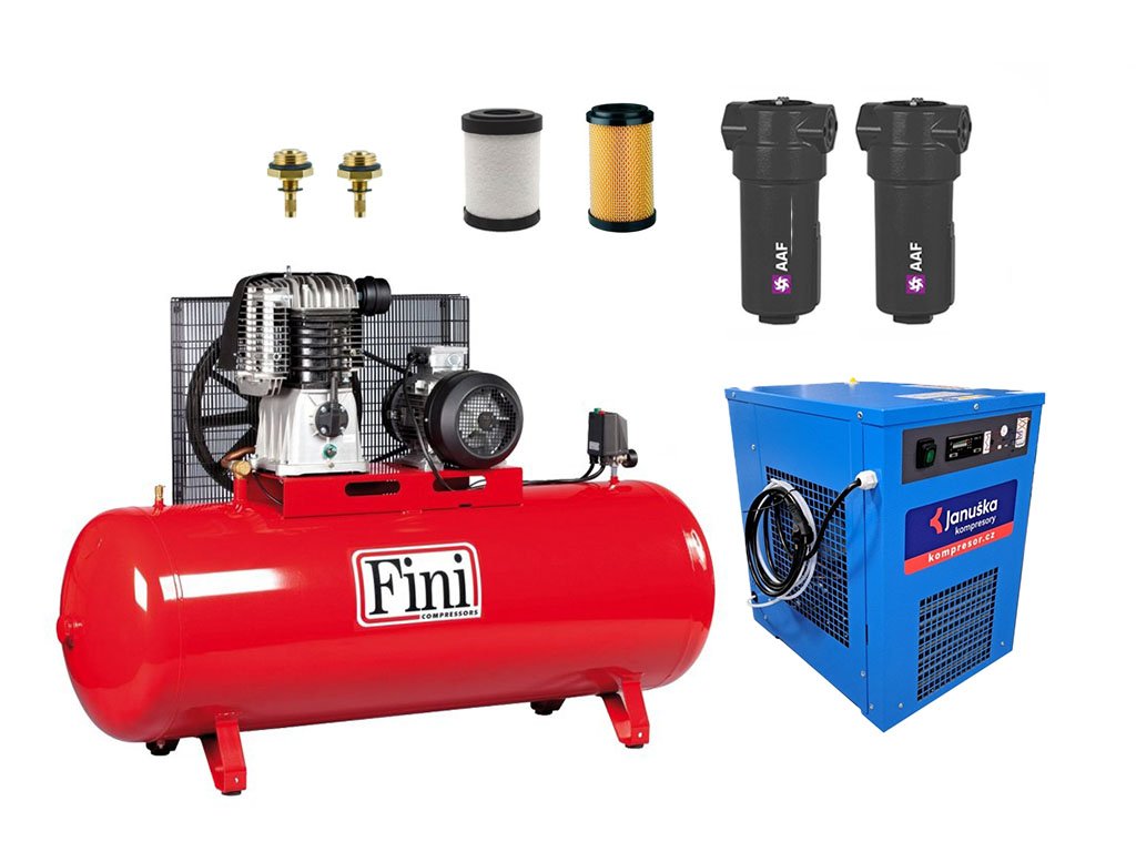 Set kompresoru Fini BK 120-500F-10T + sušička Friulair FMD 9 + 2 sety filtrů