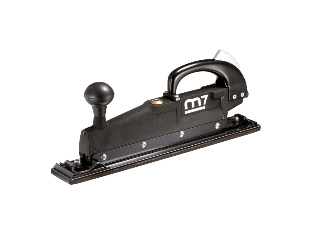 - vibrační bruska s obdélníkovou brusnou plochou 64 × 444 mm určená pro občasné broušení a leštění dřevěných, kovových a kožených povrchů