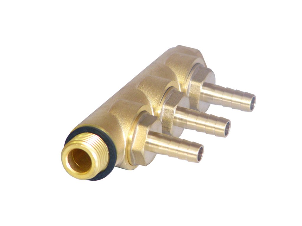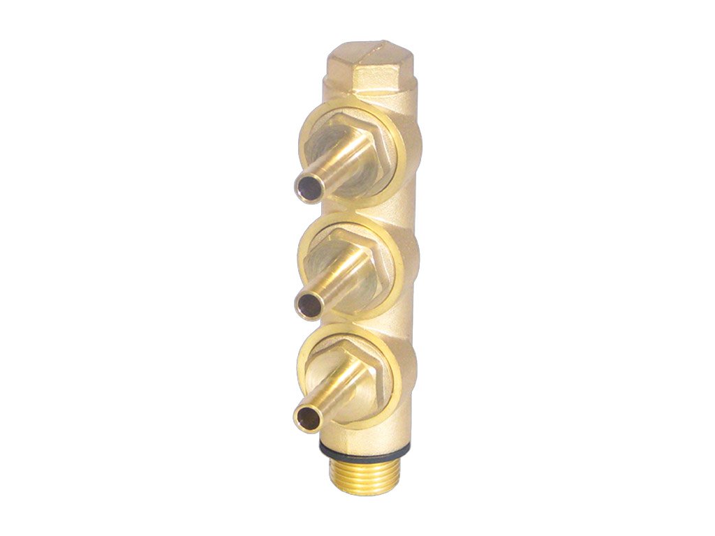 Mosazný vícevstupní adaptér pro zjednodušení instalace separátoru kondenzátu umožňuje až tři další vstupy kondenzátu.