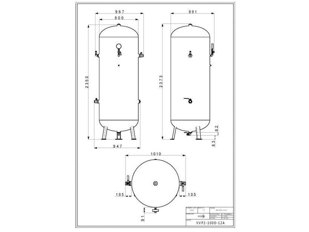 Vzdušník stojatý s armaturami, 1000l 12bar, lakovaný