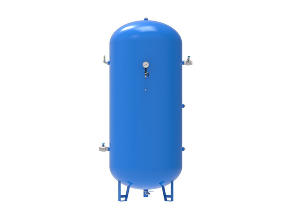 - stojaté tlakové nádoby z uhlíkové oceli pro stlačený vzduch dodáváné osazené základními armaturami