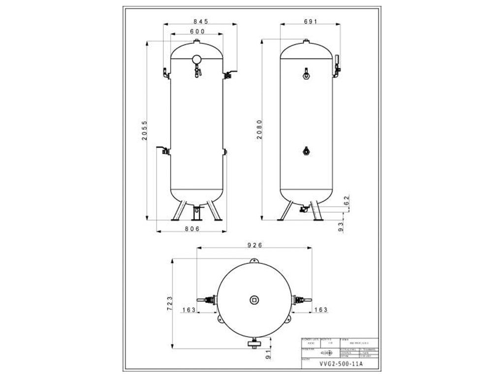 Vzdušník stojatý s armaturami, 500l 11bar, galvanizovaný
