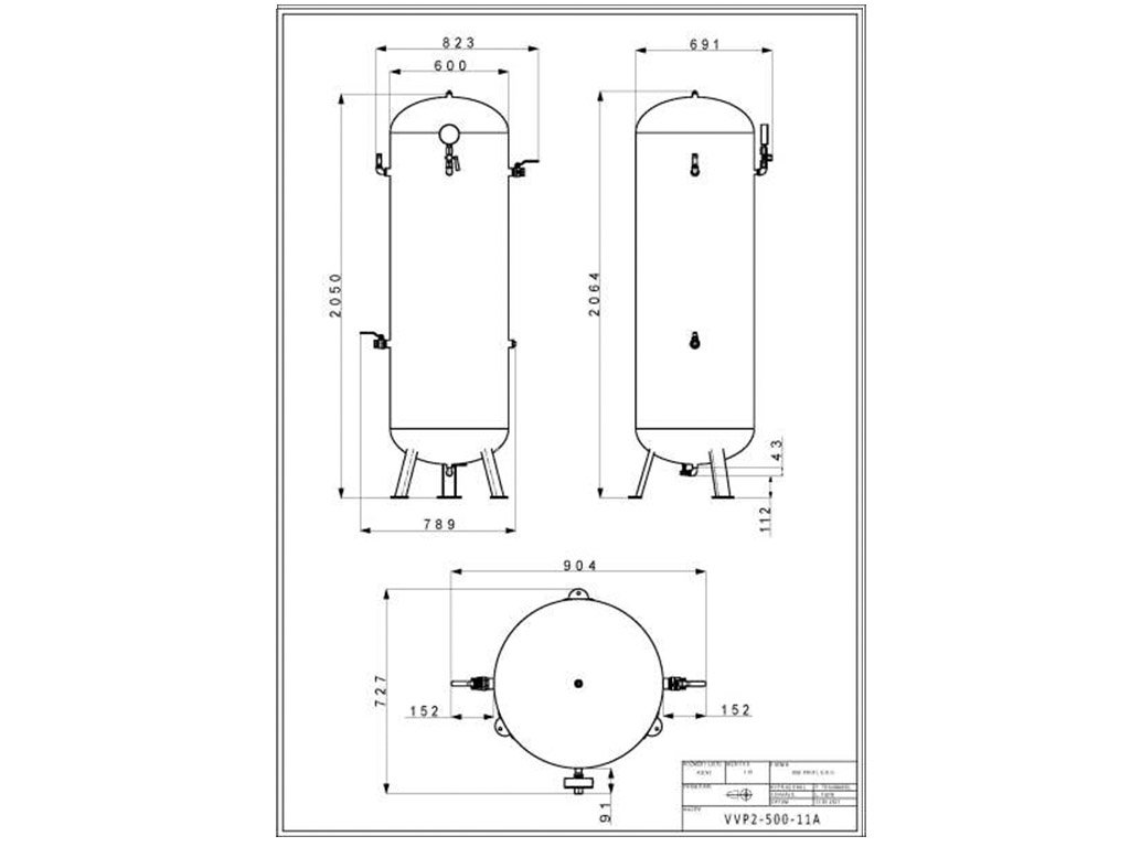 Vzdušník stojatý s armaturami, 500l 11bar, lakovaný
